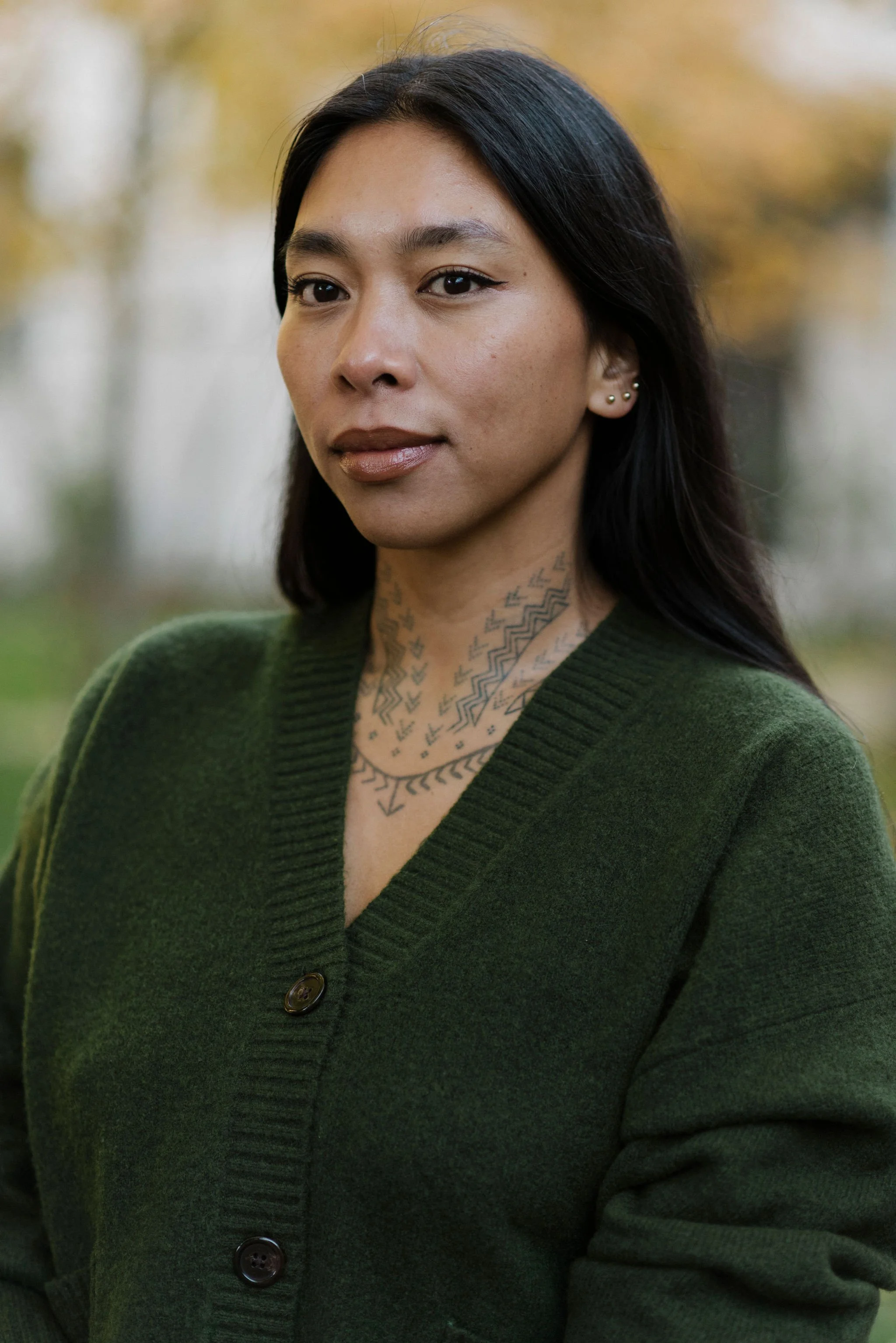 Quill Christie-Peters is an Anishinaabe educator and self-taught visual artist from Lac des Mille Lacs First Nation located in Treaty 3 territory. She is the creator and director of the Indigenous Youth Residency Program, an artist residency for Indigenous youth that engages land-based creative practices through Anishinaabe artistic methodologies. She holds a master’s degree in Indigenous governance on Anishinaabe art-making as a process of falling in love. She has spoken at Stanford University, the University of Toronto, and California College of the Arts, and her written work can be found in GUTS magazine and Canadian Art. She is also a mother, beadwork artist, and traditional tattoo practitioner following the protocols of her community. All of her work can be found at @raunchykwe.